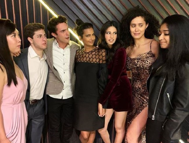 Maitreyi Ramakrishnan (women to the right) with 'Never Have I Ever' cast members (©: Instagram/Maitreyi Ramakrishnan)