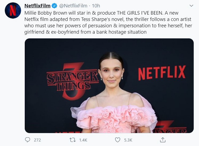 Netflix announced that they would be making a feature film adapting Tess Sharpe's young-adult thriller novel 'The Girls I've Been.' And the most important news than that was about Millie Bobby Brown, who is set to play the lead role of 'The Girls I've Been.'
