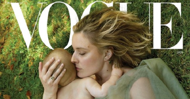 Greta Gerwig and her son Harold (©: Twitter/Vogue Magazine)